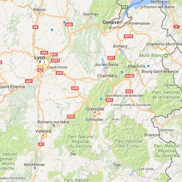 Où dormir : aux hotelF1 de Lyon (Caudan, Beynost, L'Isle d'Abeau, Saint-Priest, Solaize, Oullins ou Venissieux), Chambéry La Motte-Servolex (proche Massif des Bauges), Gières (Grenoble Université, proche La Chartreuse) et de Bourg-lès-Valence (Valence Nord, proche Romans-sur-Isère).